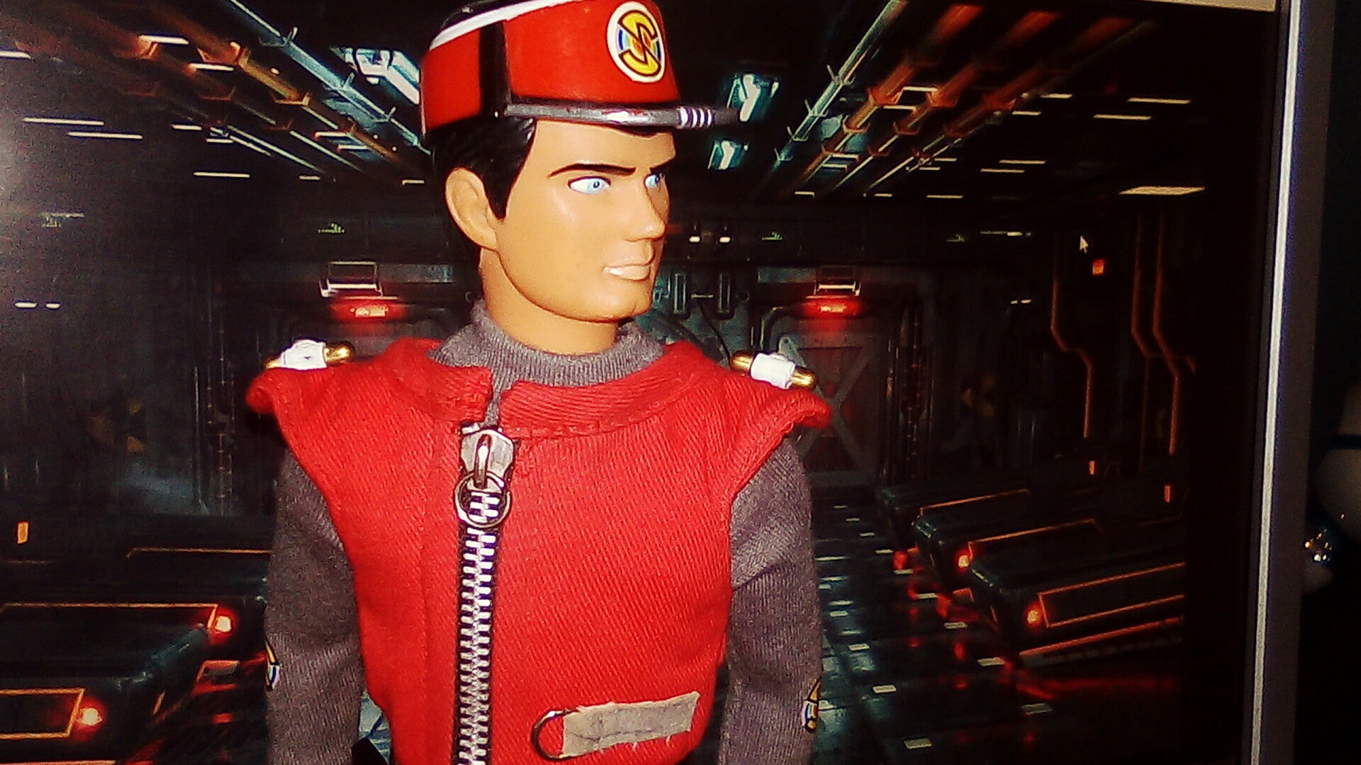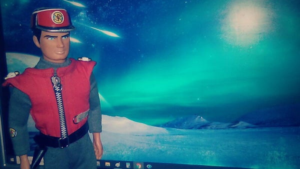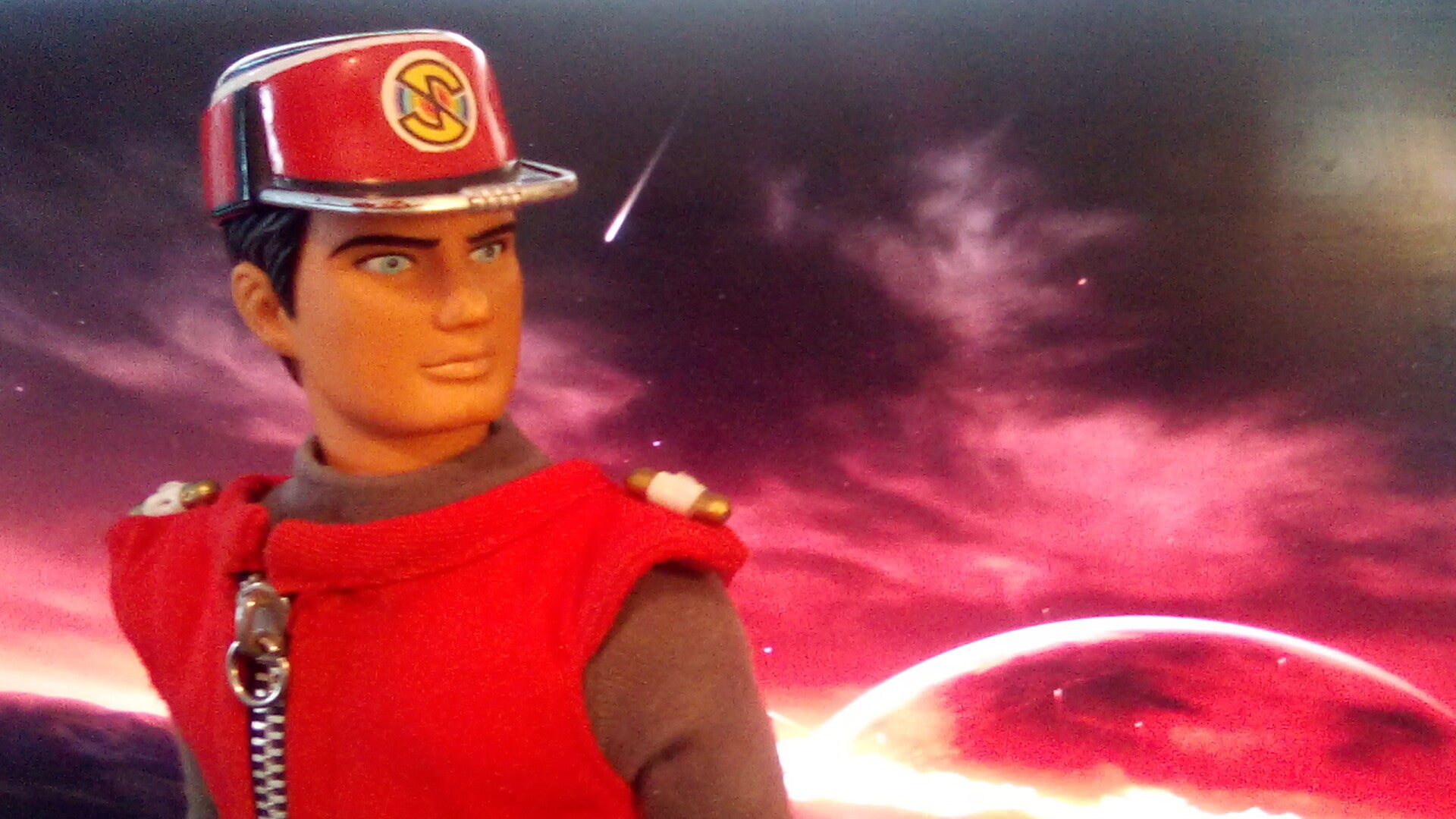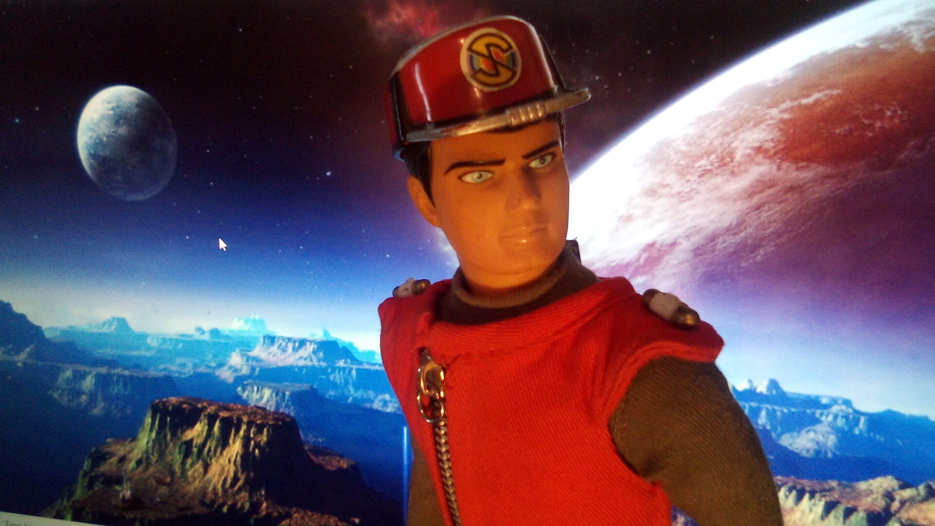 My Captain Scarlet doll posing with scenic space backgrounds ( I used images on my computer)
