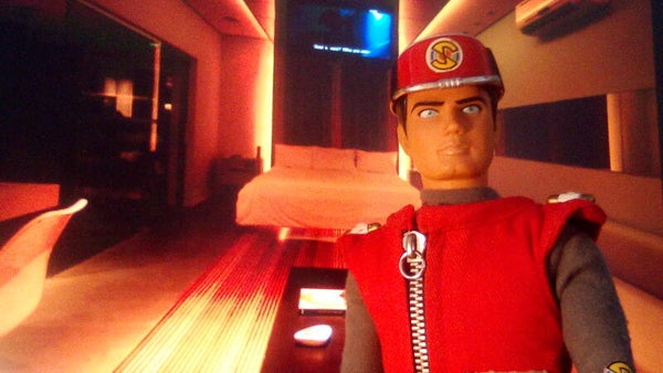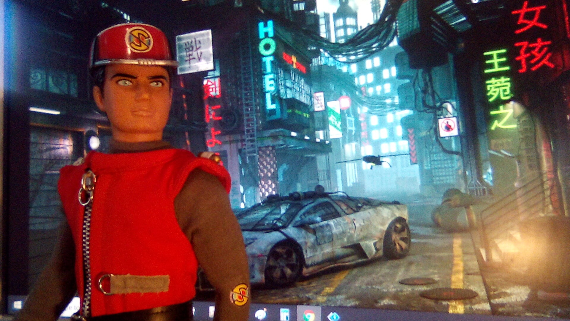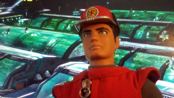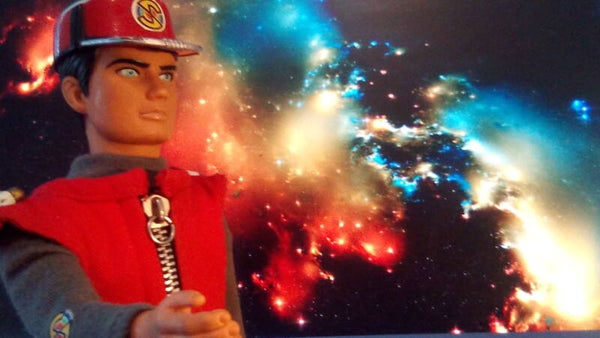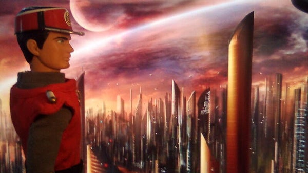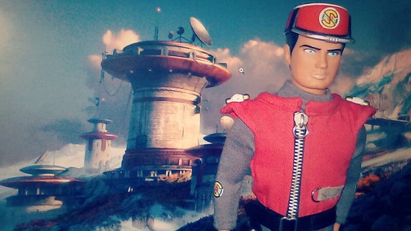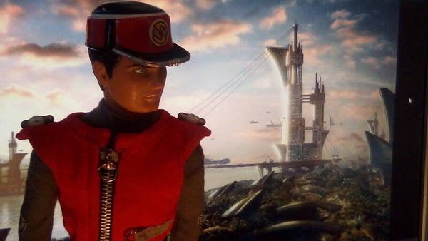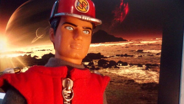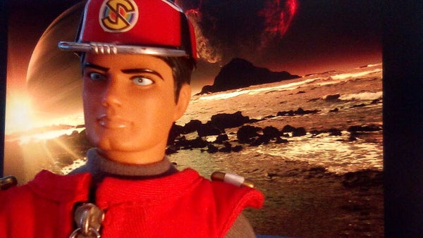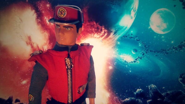 My Captain Scarlet doll posing with scenic space backgrounds ( I used images on my computer)
